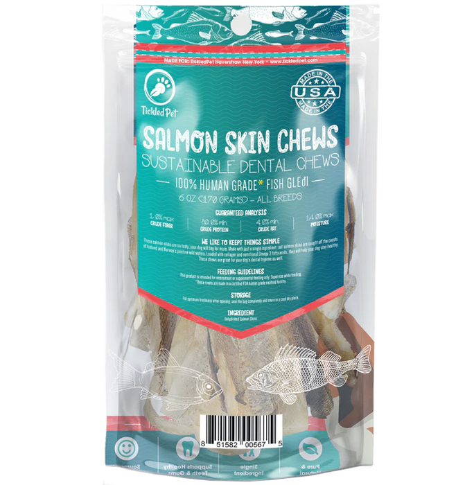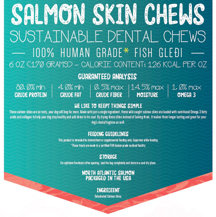 - SINGLE INGREDIENT: This high-protein dog chew is made with only dehydrated salmon skin that is so loaded with Omega-3s that it is visible with your own eyes, these healthy oils are absolutely dripping from these precious skins.