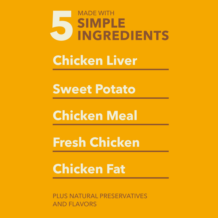 "Chicken liver, sweet potato, chicken meal, deboned chicken, natural flavor, chicken fat, mixed tocopherols(preservative), citric acid (preservative), rosemary extract"