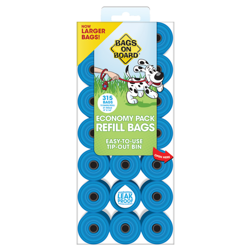 Bags on BoardBAGS ON BOARDWaste Pick-Up Refill Bags100% leakproof guaranteeRefill bags in classic blue colorFits most dispensersIngredients100% Bio-degradable