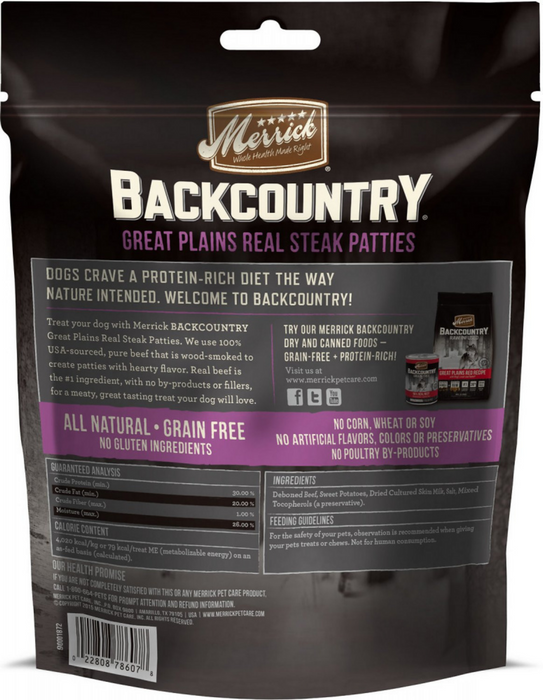 Merrick Backcountry Great Plains Grain Free Real Steak Patties Dog Treats