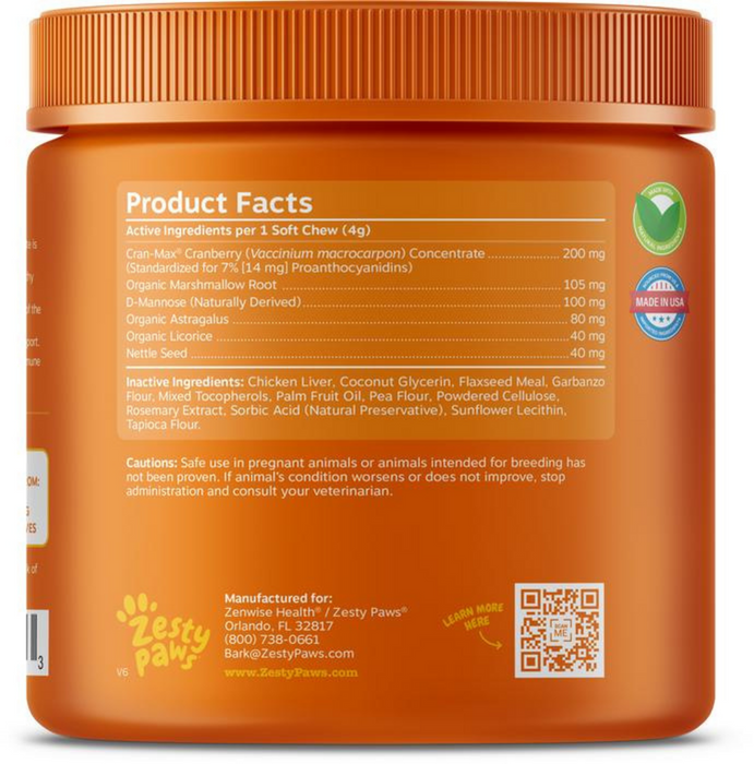 Zesty Paws Cranberry Bites for Urinary, Kidney And Bladder Support Soft Chews For Dogs