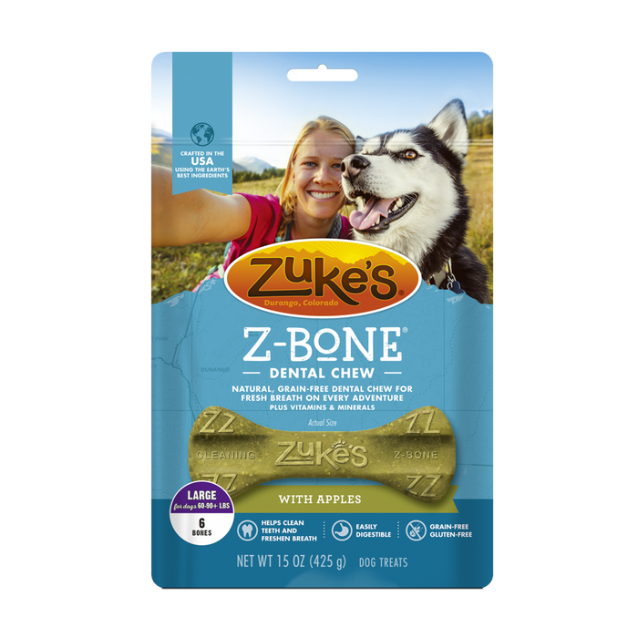 Every adventure is more fun when it includes special moments of closeness with your dog. Make sure those moments are enjoyable for both of you by fighting doggy breath the natural way with Zuke’s Z-Bone Dental Chews. Made with an ideal texture to gently clean your dog’s teeth, each highly digestible Z-Bone is specially crafted in the USA using the Earth’s best ingredients — like apples and carrots — and NO wheat, corn, soy or gluten. It’s a delicious way to support your dog’s clean teeth and fresh breath so they can continue to enjoy every adventure you share.